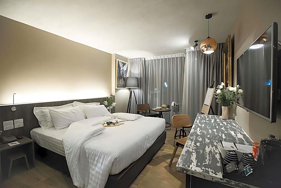 Exclusive Op Art Gallery is 323 square feet and includes either a king-size bed 150-183 width or 2 single beds 80-130 width plus living room.